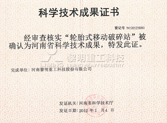 輪胎式移動(dòng)站省科學(xué)技術(shù)成果獎(jiǎng)