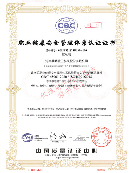 職業(yè)健康安全管理體系認(rèn)證證書