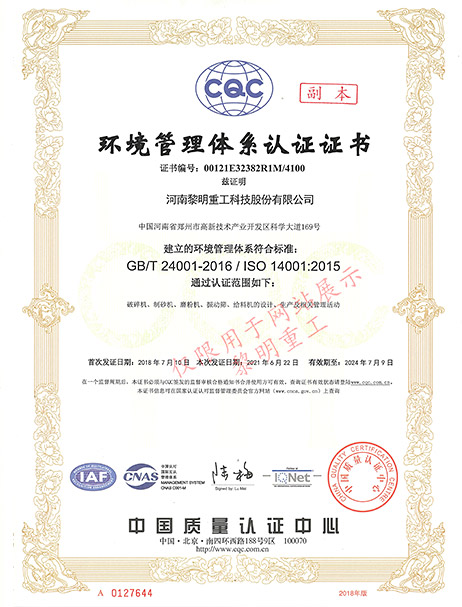 環(huán)境管理體系認(rèn)證證書