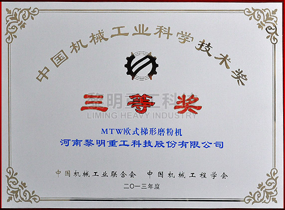 MTW中國(guó)機(jī)械工業(yè)科學(xué)技術(shù)獎(jiǎng)