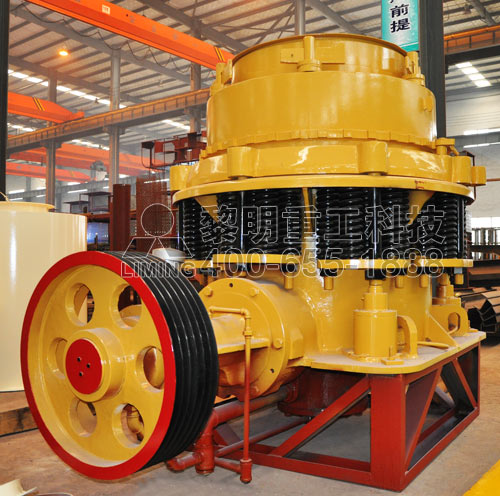 山東煤矸石破碎機(jī)(山東煤矸石粉碎機(jī))主要部分由機(jī)架、定錐總成、動(dòng)錐總成、彈簧機(jī)構(gòu)、碗型軸架部和傳動(dòng)裝置組成。輔助部分由電氣系統(tǒng)、稀油潤(rùn)滑系統(tǒng)、液壓清腔系統(tǒng)組成。其中定錐總成主要有調(diào)整套、軋臼壁,動(dòng)錐總成主要由主軸、動(dòng)錐體、破碎壁組成,傳動(dòng)部分主要由大帶輪、傳動(dòng)軸、小錐齒輪、大錐齒輪等組成。